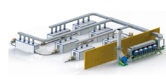 Adsorpčné zariadenie s aktívnym uhlím sa skladá hlavne z adsorbéra aktívneho uhlia (perforovaná doska, adsorpčná vrstva aktívneho uhlia), odstredivého ventilátora, elektrickej ovládacej skrinky, vzduchového potrubia, výfukového potrubia a ďalších komponentov.